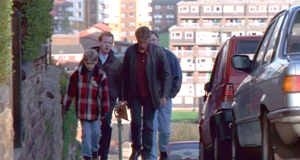 - The next spot, where the lads have a game of football, took a lot of effort to locate as it’s not listed on many movie location websites. However, looking at the scene’s backdrop and comparing it with Google Earth, I’ve worked out that it is up on Skye Edge Fields, on the spot where a new set of flats have been built. If you drop down to the lower field, I’m pretty sure that is also where Guy gets wolf whistled while out running. Be warned, the route now takes you down a small footpath, likely littered with broken glass, so take care here.