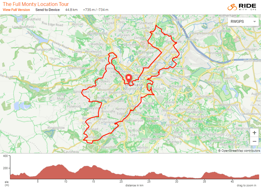 - The route takes you past the Don Valley Bowl, Ice Sheffield and Centertainment before joining the Five Weirs Walk towards Meadowhall. This section sees you tackle the best climb of the route: the ‘Cote de Jenkin Road’. It’s only half a mile long and, according to the sign at the bottom of the hill, has a gradient of 33% but it actually feels more like half that (that’s still 17% so, you know, far from flat)! It is a great little climb that once you have crested, will drop you down to Hyacinth Road (second left once you begin descending), the location where Gaz tells a couple of ladies that their stripping will be ‘the full monty’. This area has been completely redeveloped, so it looks nothing like it does in the film. Also, trivia fans, while the ladies are filmed at this spot, the opposite shot of Gaz and the lads is actually filmed on Thickley Bank in Shirebrook, 25 miles away.