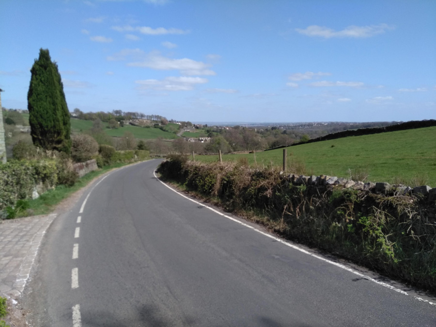 Stay on as the road bends around to the left and the view of the valley below really opens up. It’s a gentle climb, mostly staying in the low single figures, before you finally arrive in a place called, appropriately enough, ‘Hill Top’ and Our Cow Molly, with that ice cream you’ve been looking forward to.