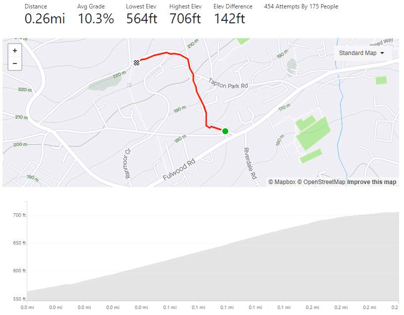 You begin, just off Fulwood Road, by the Ranmoor Inn. As the road curves around the church you’re immediately into a dead straight 10% climb. To add insult to injury, as you slowly climb up the hill, the gradient gently increases, peaking out at about 14% as you pass Tapton Park Road. At this point, it definitely feels harder than you expect.