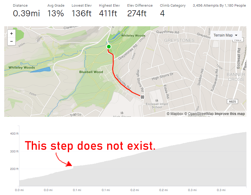 As you pass each side road, the hill feels progressively less challenging and by the time you’ve reached Airdale Road it’s down to 4%. With only 0.1 miles to go, you’re greeted with a brief 12% ramp before the segment finally ends at the junction.