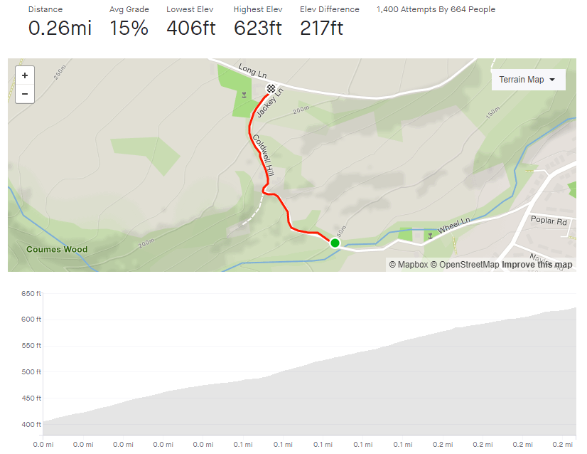 The start of the incline begins between Rushdale Avenue and Albert Road, facing north (there is an interesting footpath you can cycle up in the other direction but we’ll save that for another day). Unfortunately, Albert Road is a blind crossroads so, unless you can get a mate to stand there and give you the all clear, it’s safer to start at that junction (and also where the Strava segment begins).